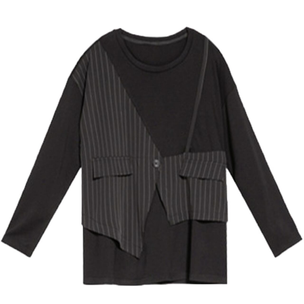 レイヤードストライプ切替ロングスリーブトップス R0649