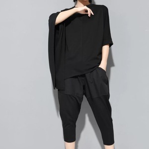 ワンサイドポンチョ風クルーネックカットソー R0073