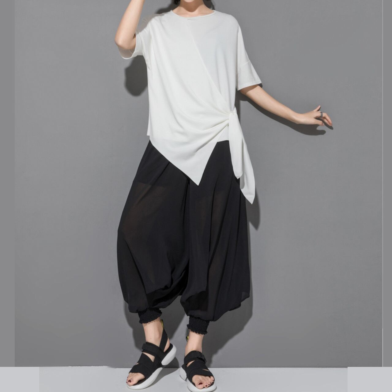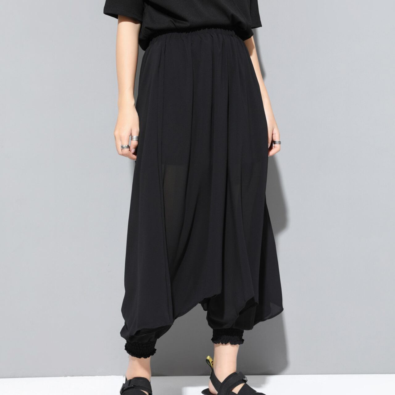 シースルー素材とサルエルシルエットが絶妙に融合したトレンドアイテムの登場です!