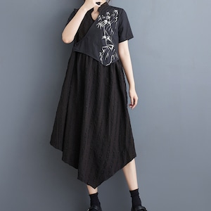 アシンメトリーバンブープリントドレス R0300