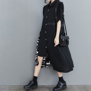 モノクロジオメトリックアシンメトリーワンピース R0313