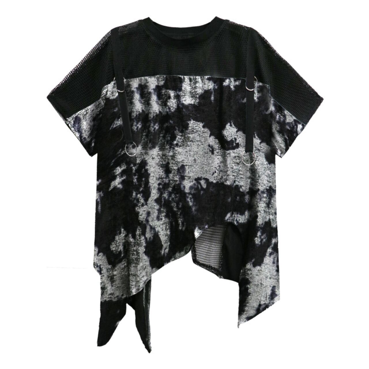 グリッドスプライシングアシンメトリルーズTシャツ R0325