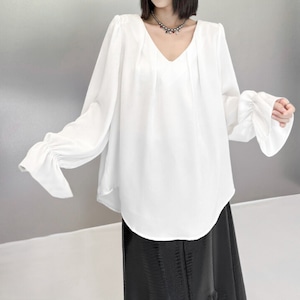 フリルスリーブVネックエレガントシャツ R0480