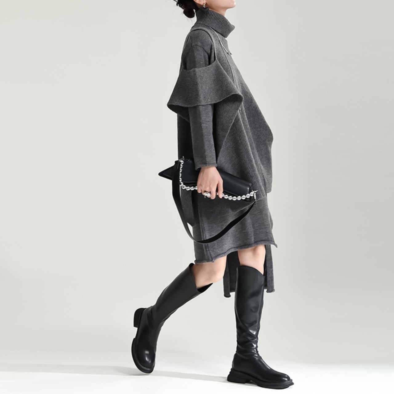 重なり合う生地が独特な動きを生み出し、スタイルに立体感を加えています。