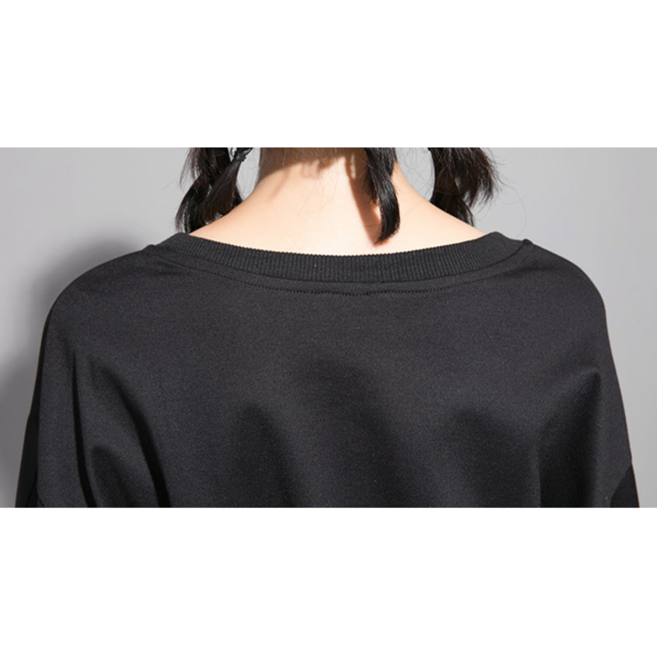 アシンメトリーなデザインと繊細なディテールが、洗練されたシルエットを引き立てます。