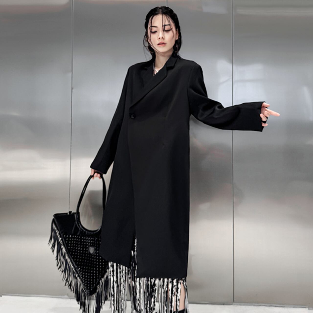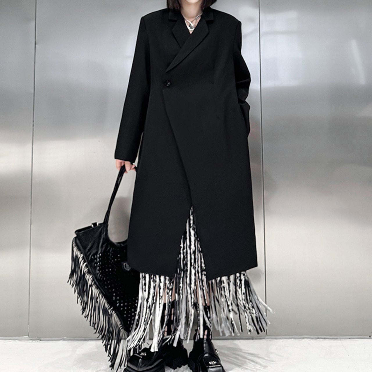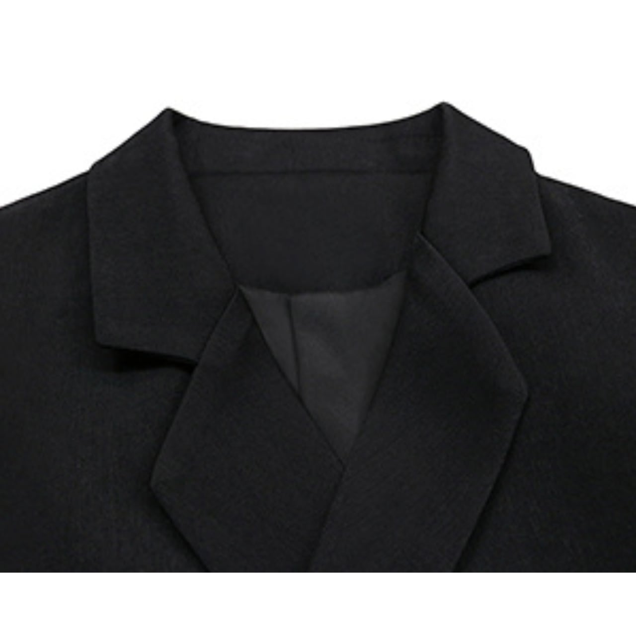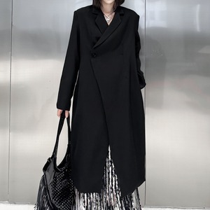 アシンメトリーなボタン配置が個性的で、クールな印象を演出します